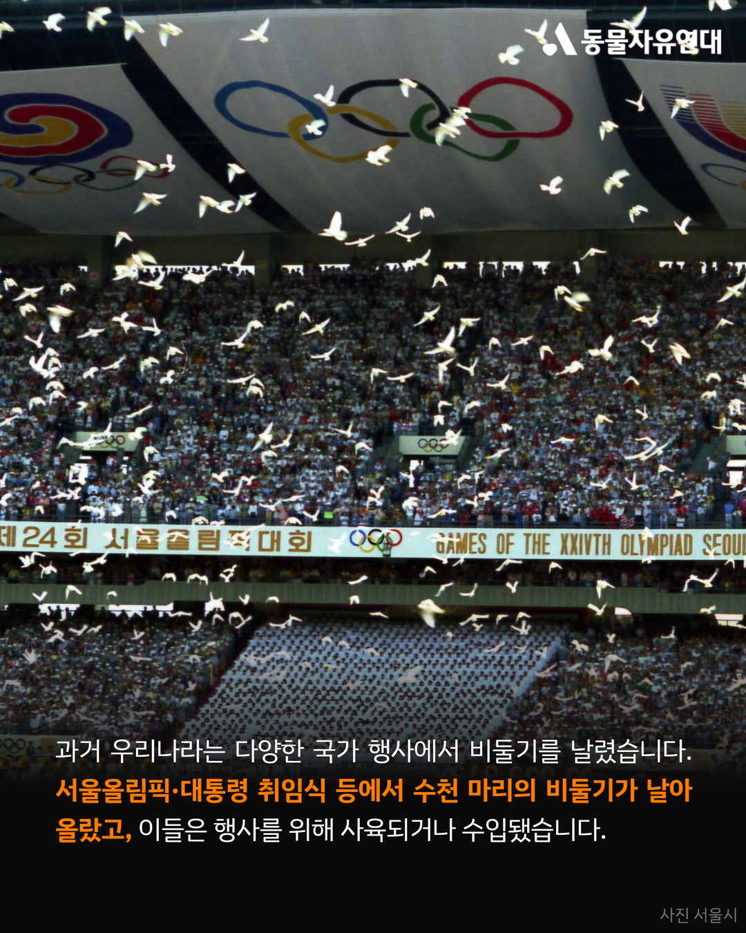과거 우리나라는 비둘기를 ‘평화의 상징’으로 여기며 다양한 국가 행사에 활용했습니다. 서울올림픽, 대통령 취임식 등에서 하늘로 날아오르던 수천 마리의 비둘기들. 이들은 대부분 사육되거나 수입됐고, 서울시는 ‘파출 비둘기’라는 이름으로 직접 대여까지 했습니다.