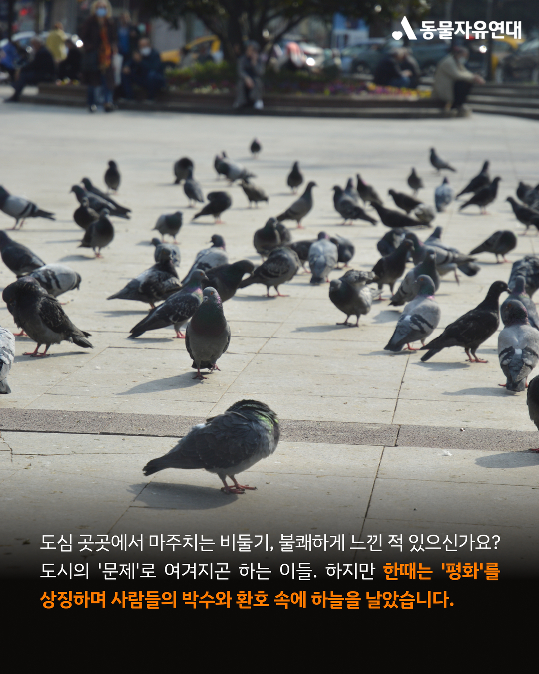 한때 ‘평화의 상징’으로 하늘을 수놓았던 비둘기. 이제 도시의 골칫거리이자 혐오의 대상으로 전락했습니다. 인간의 필요에 의해 사용된 생명은 '유해하다'는 낙인 속에 폭력적으로 관리되거나 때로 학대받기까지 합니다. 그런데 정말 유해한 건 비둘기일까요, 아니면 생명을 함부로 대하거나 쉽게 처리하려는 태도일까요?