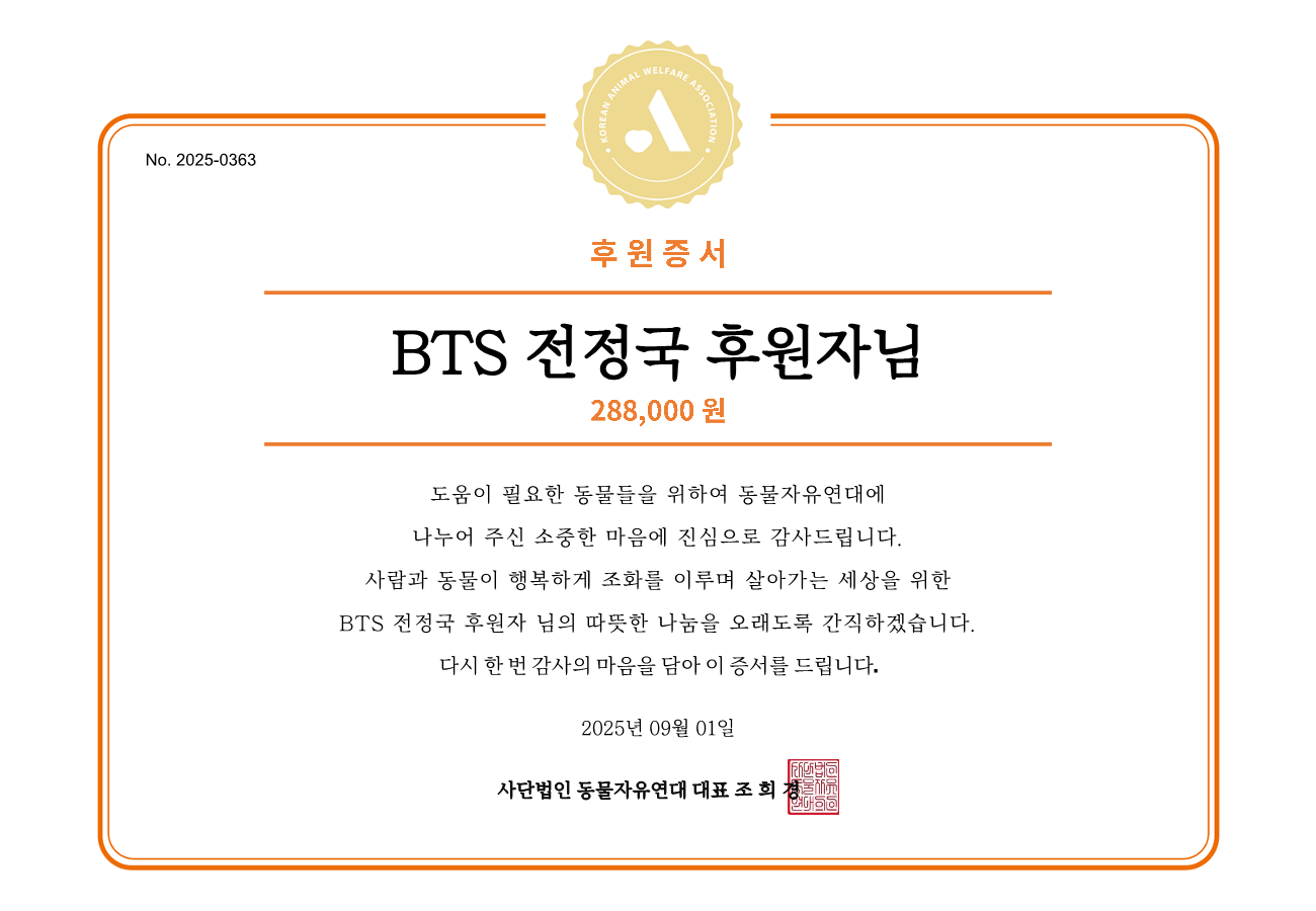 전정국 님의 생일(09월01일)을 기념하여 후원해주셨습니다.