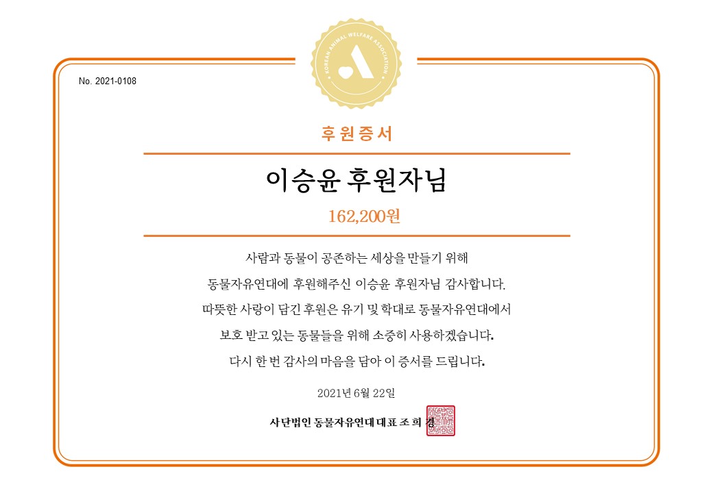 동물에게 더 나은 내일을 선물해주기 위해 선한 영향력을 행사해주셔서 감사드립니다.