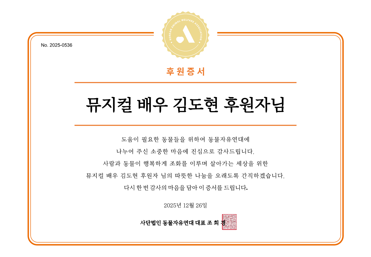 김도현 님의 생일 (12월 26일)을 기념하여 후원해주셨습니다.